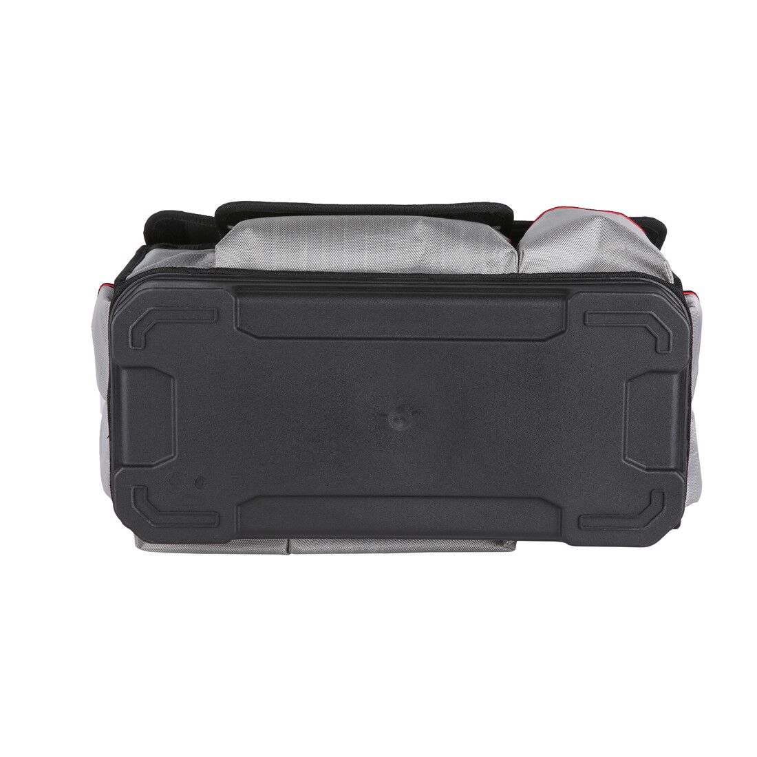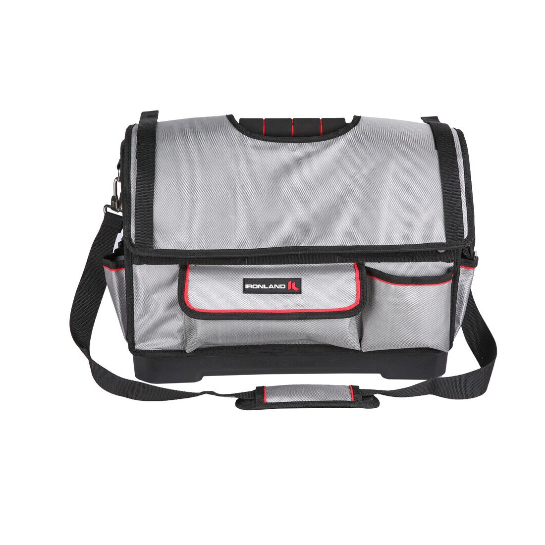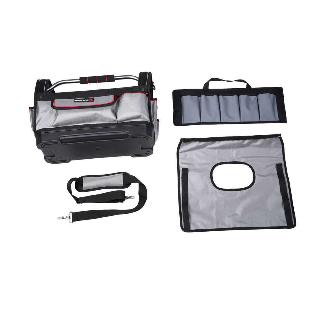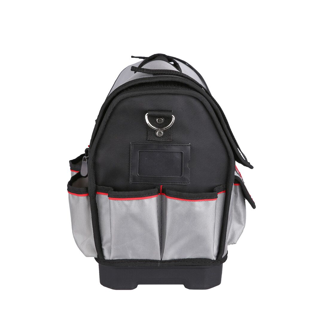 18″, 1680D Polyester, 8 External Pockets, 9 Internal Pockets, 24 Loops, Removable Tool Wall, Plastic Base, With Shoulder Strap