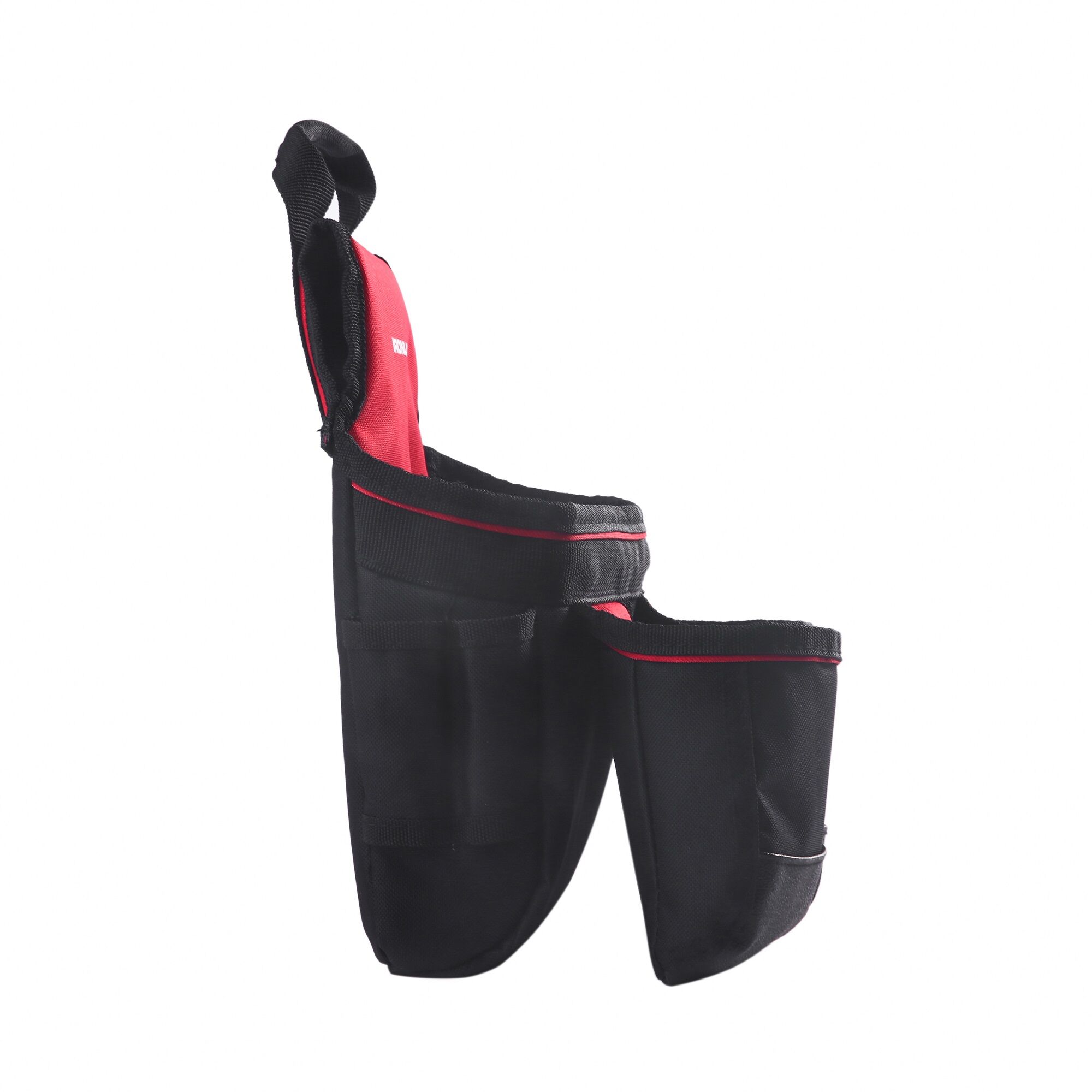 TP-007X Fastener Tool Pouch is made of 600D polyester,double-reinforced front pockets provides extra capacity and easy access, large closed zippered pocket – suitable for all essentials: wallet, keys and cell phone, Special pocket and safety loop for jab saw – for maximum protection, Integrated metal clip tape holder, External screwdriver’s leather holder, Extra reinforcement with heavy stitching