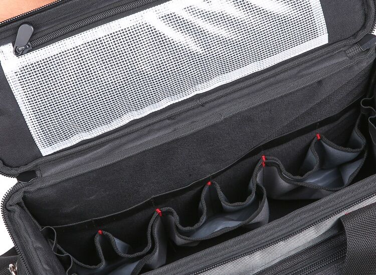 The handle grip of this service technician tool bag is padded with 3D air mesh and EPE foam sheet, which makes carrying this bag very easy and comfortable.