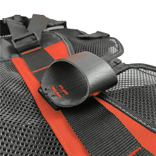 We also added a heavy duty leather loop to the back of this tool vest to hold some heavy tools or hardware such as hammers, wrenches or large pliers.